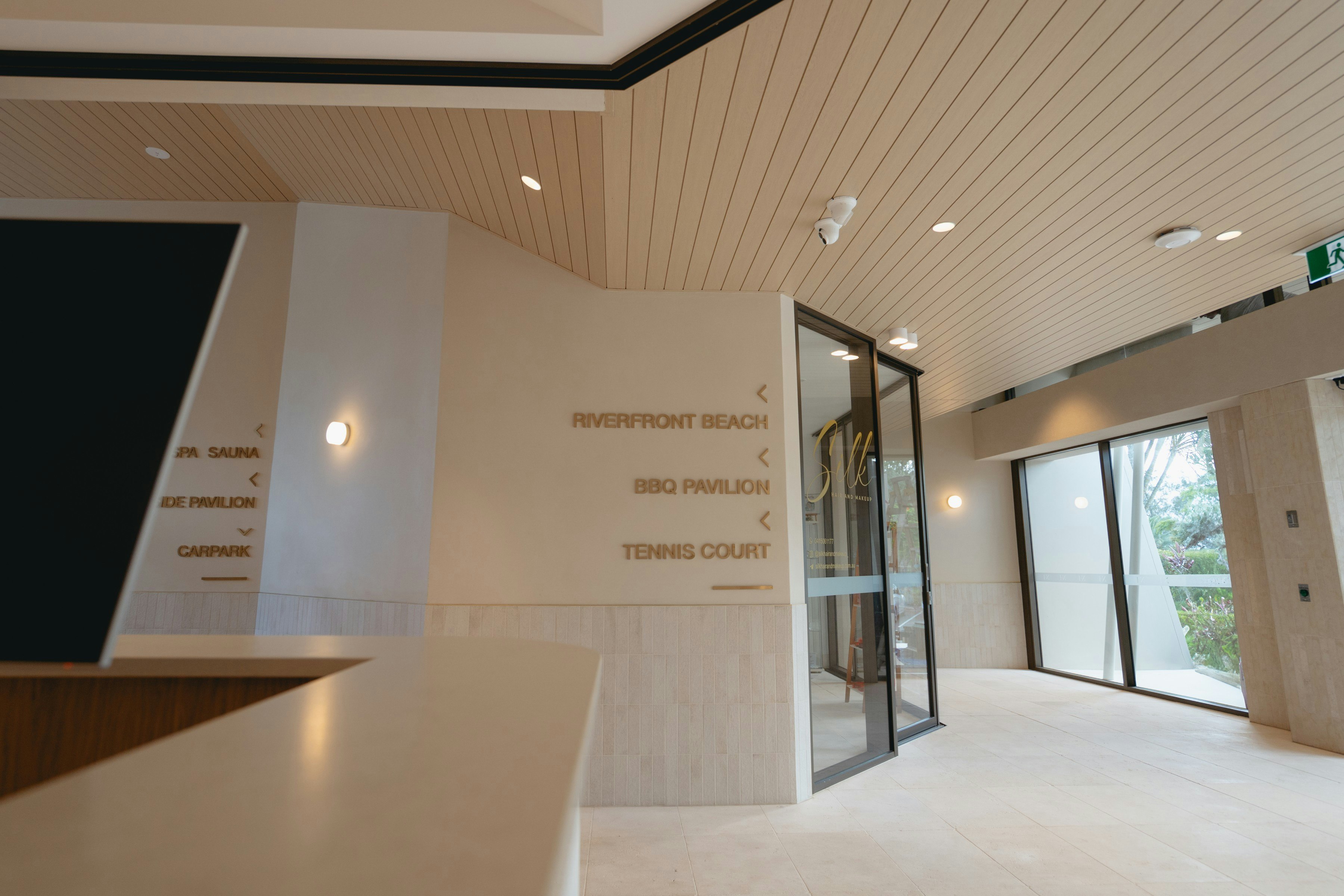 A major cosmetic renovation completed on the lobby, reception and hair dressers which saw the tired riverside resort entrance elevated to reflect a true luxury holiday experience. In collaboration with the design team at Huntress and Hound, our team worked on fitting out the reception and office with new joinery, flooring, lighting and glazed elements.