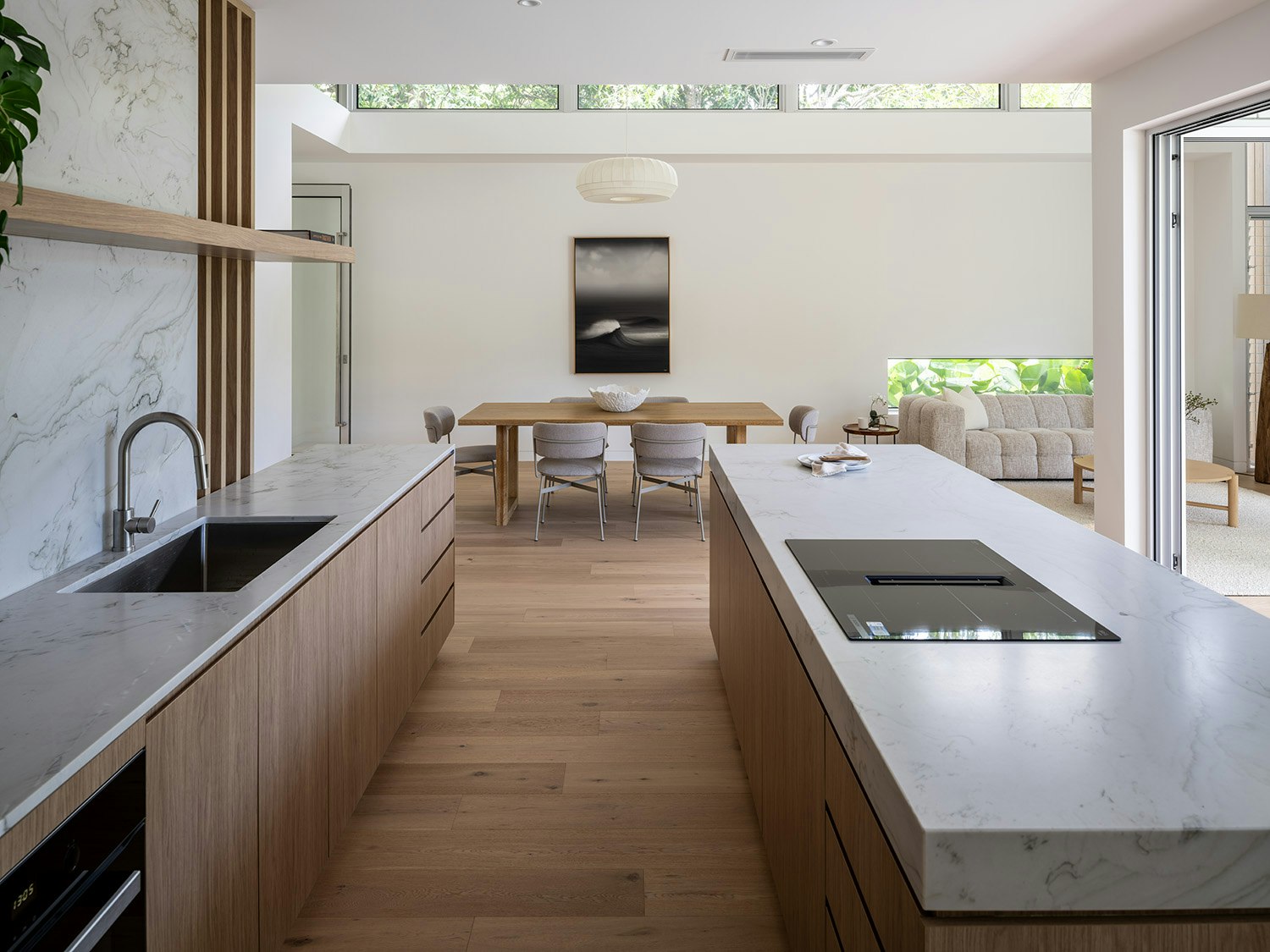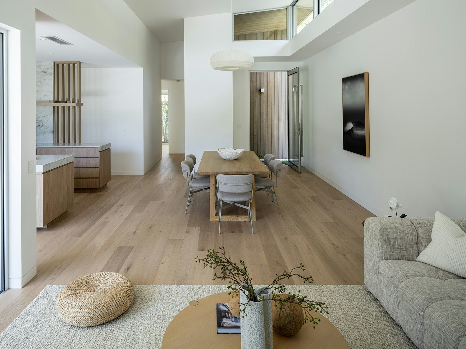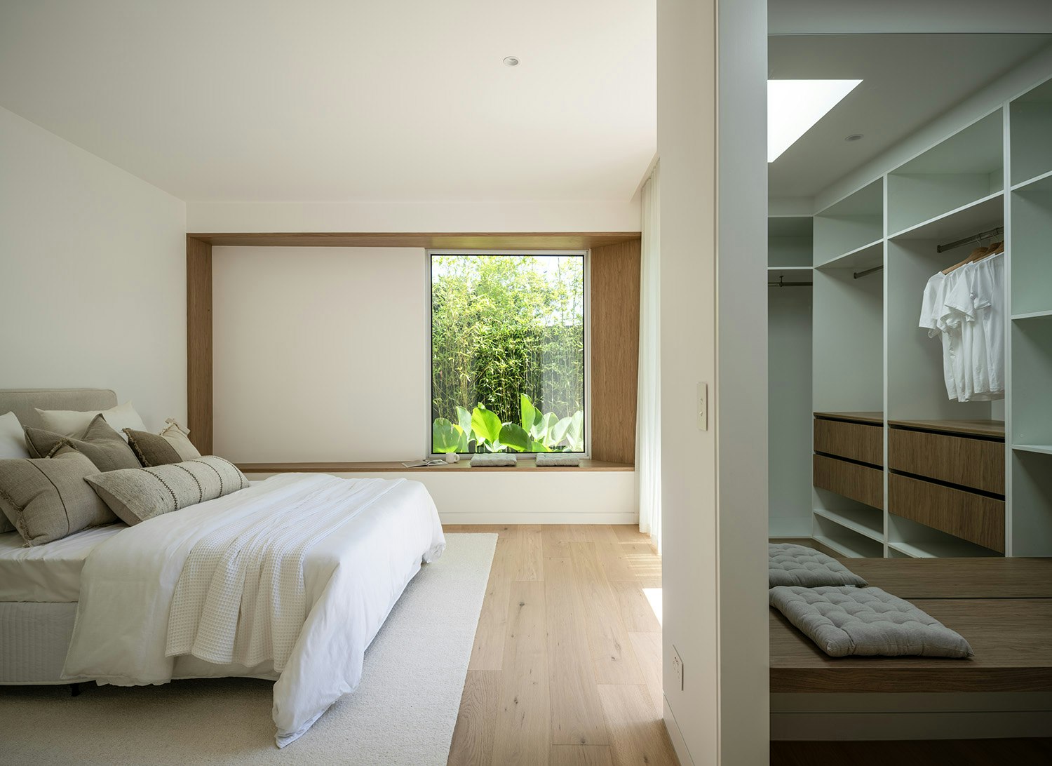 Only one wall from the original house remained in this dramatic transformation. The home was completely reimagined, both inside and out, with an additional 100 m² creating an extra bedroom, a spacious living area, and a luxurious master ensuite. A new roofline allows soaring 4‑meter ceilings in the indoor and outdoor living spaces, giving a true sense of openness. Standout features include an outdoor sauna, a new pool, and a private terrace courtyard off the master suite.